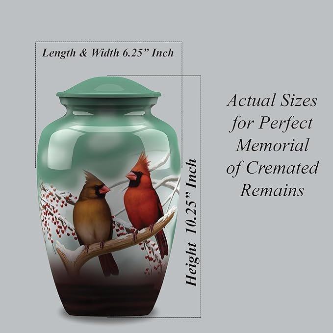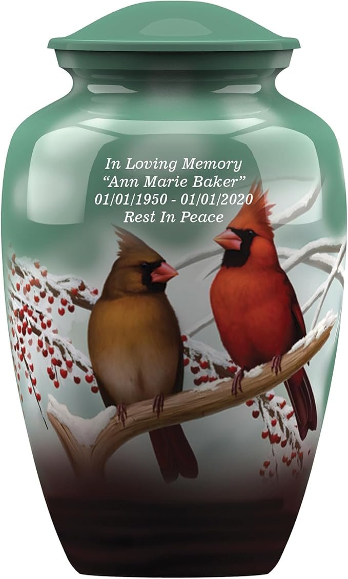 Adult Cremation Funeral Customized Urn with Cardinal Birds Pictured Theme for Human Ashes of Female & Male