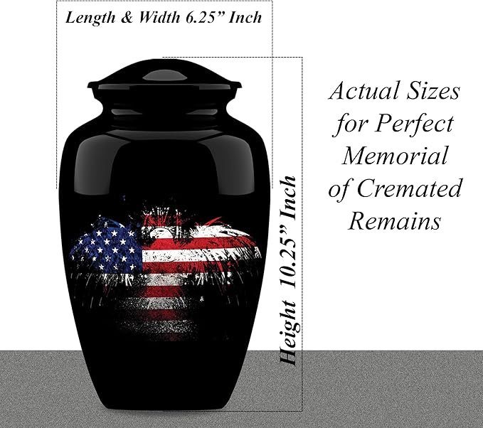 Adult Cremation Funeral CUSTOMIZED Urn with Eagle Flag Pictured Theme for Human Ashes of Female & Male