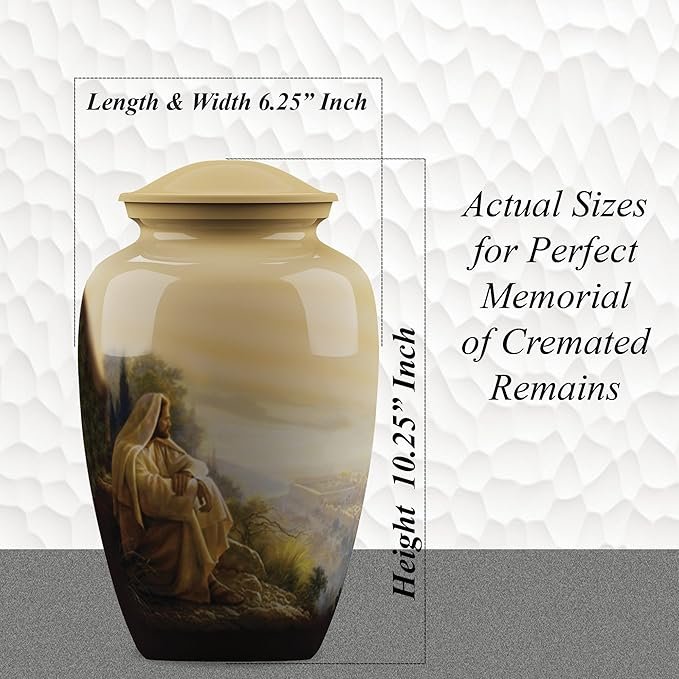 Adult Cremation Funeral Customized Urn with Jesus Sitting Pictured Theme for Human Ashes of Female & Male