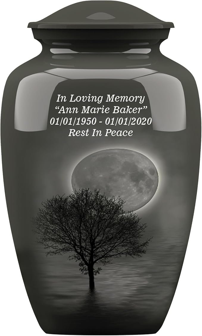 Adult Cremation Funeral Customized Urn with Moon Night Tree Pictured Theme for Human Ashes of Female & Male