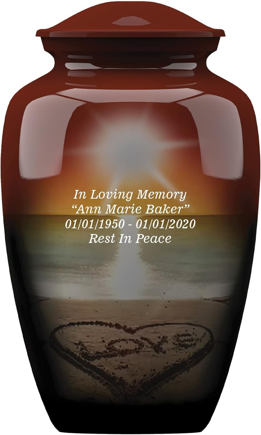 Adult Cremation Funeral CUSTOMIZED Urn with The Sunset Pictured Theme for Human Ashes of Female & Male